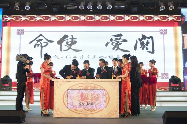 随后,大会进行了年度主题“关爱·使命”的开启仪式。在刘载望董事长的带领下,各大区、职能系统领导将象征“承诺与携手奋进”的个人印章压印在书有“关爱·使命”的传统卷轴上,融合各大区、各系统之力隆重开启了2012年年度工作主题。新的年度主题,寓意着江河幕墙全员上下将携手互信,共筑江河幕墙不断卓越发展之路,并持续赢得客户垂青,赢得投资者信赖,赢得社会赞誉。